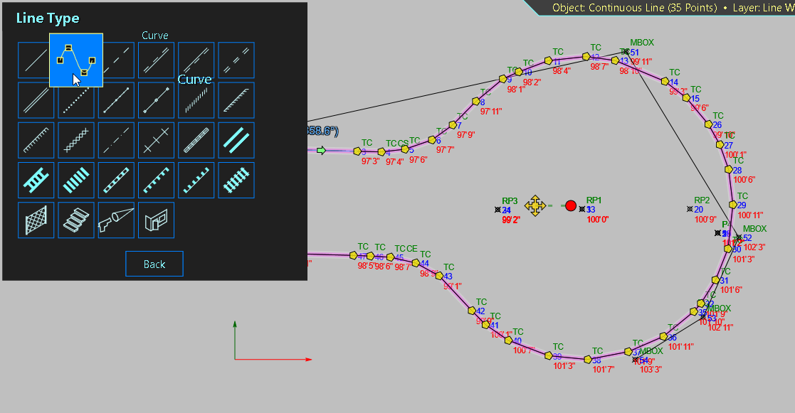 - If you use the Auto Linework feature, the points are connected with a Continuous Line. Click anywhere on that line to select it and click the Line Type button on the tool palette. One of the Line Type options is a curve. Select the curve to replace all the straight line segments with a smooth curve.